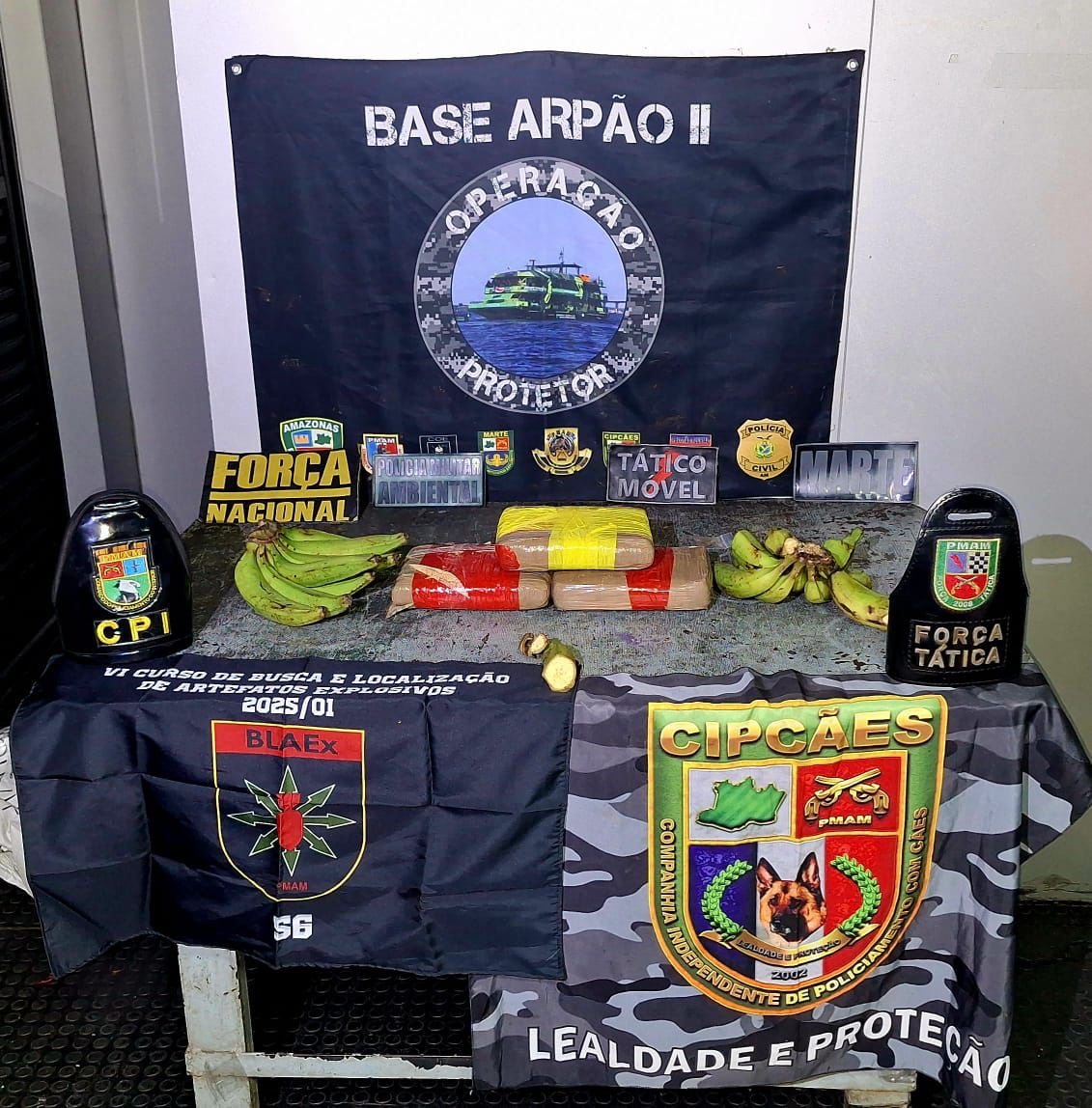 Base Arpão 2: PMAM apreende drogas escondidas em saco de bananas e caixas de equipamentos de informática