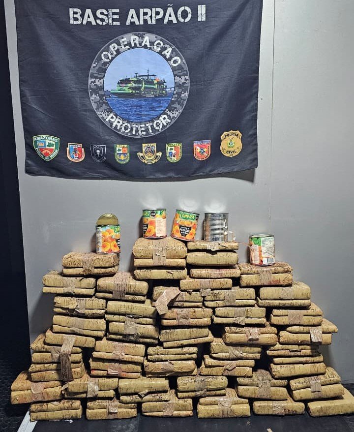 Mais de 70 quilos de drogas escondidas no interior de tubos de PVC e em latas de frutas em caldas foram apreendidos na noite de sexta-feira (20/02), pela Polícia Militar do Amazonas (PMAM) durante operação na Base Arpão 2, nas proximidades de Coari (a 363 quilômetros de Manaus). Na ação, um homem foi identificado como responsável pela carga de entorpecentes e foi preso por suspeita de tráfico de drogas.