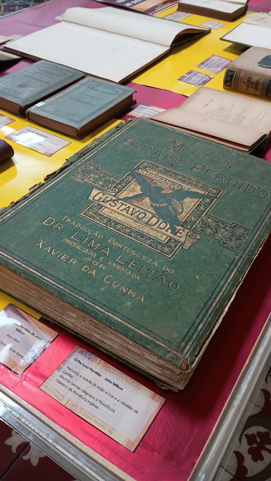 A mostra reúne obras consagradas da literatura mundial e nacional, como Dom Quixote, Os Lusíadas e A Divina Comédia – Inferno, além de manuscritos que ajudam a contar a trajetória da própria biblioteca. Parte desse acervo raro possui ainda um valor histórico significativo por ter sobrevivido ao incêndio que atingiu o espaço em 1945, tornando-se símbolo de resistência e preservação da memória.