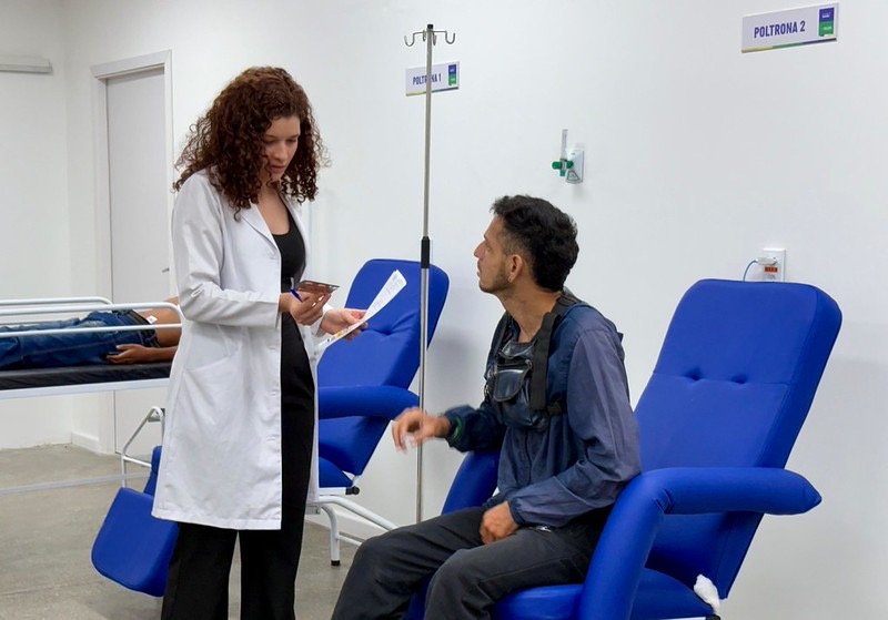 Para os casos mais complexos, o paciente passa pela triagem e é encaminhado para as salas laranja (urgente) e amarela (grave). Ali, passa por monitoramento, exames complementares e observação clínica, antes da definição sobre alta ou internação.