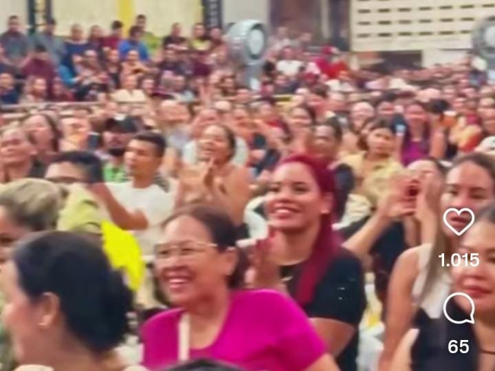 Trabalhadores da educação em Tefé acompanham pronunciamento do prefeito durante encontro no ginásio. Foto: Reprodução/Instagram
