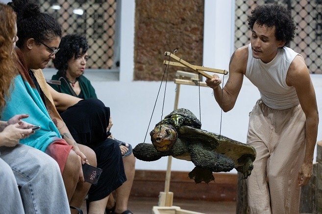 “Vi um vídeo em que apareciam borboletas sobrevoando as tartarugas, uma imagem linda e comecei a pesquisar mais sobre tartarugas. Foi quando descobri que elas depositam seus ovos nos mesmos bancos de areia em que nasceram. Percebi que há uma relação muito forte com o território, com o lugar de onde elas vieram e que as borboletas se nutrem das lágrimas delas”, conta o ator Ítalo Rui.