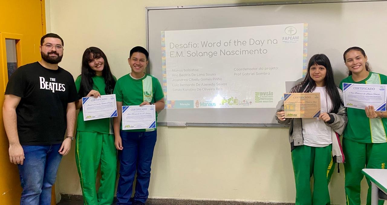 O professor de língua inglesa Junio Gabriel Sombra dos Santos coordenou a ação, intitulada “Desafio: Word of the Day na E.M. Solange Nascimento”. A escola municipal Solange Nascimento, localizada às margens da BR-174, sediou todo o trabalho.