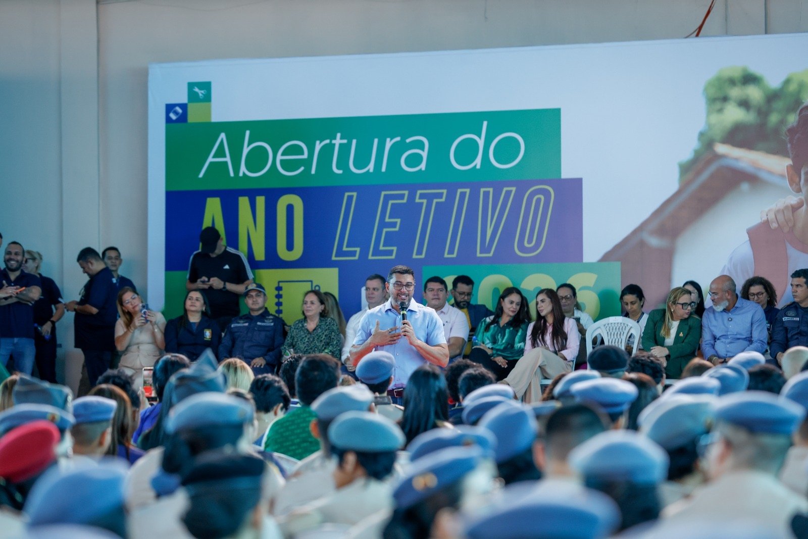 O governador Wilson Lima realizou, nesta quinta-feira (05/02), a abertura oficial do ano letivo de 2026 da rede estadual de ensino, em solenidade na Escola Estadual Professor Waldocke Fricke de Lyra (CMPM III), no bairro Tarumã, zona oeste de Manaus. O evento marcou o início das aulas para mais de 370,3 mil estudantes da capital e do interior e durante a solenidade, alunos da rede estadual que foram destaques com aprovações em vestibulares e olimpíadas científicas foram homenageados.