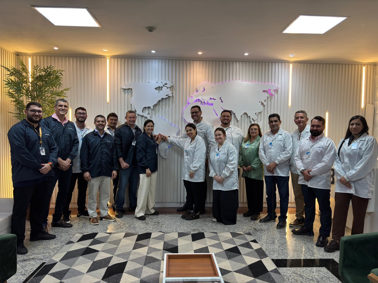 Durante a visita, foram apresentados o funcionamento das operações da Jabil no Amazonas. Empresa norte-americana de manufatura contratada (contract manufacturing), a Jabil produz diversos equipamentos industriais e eletrônicos, sob demanda de clientes.